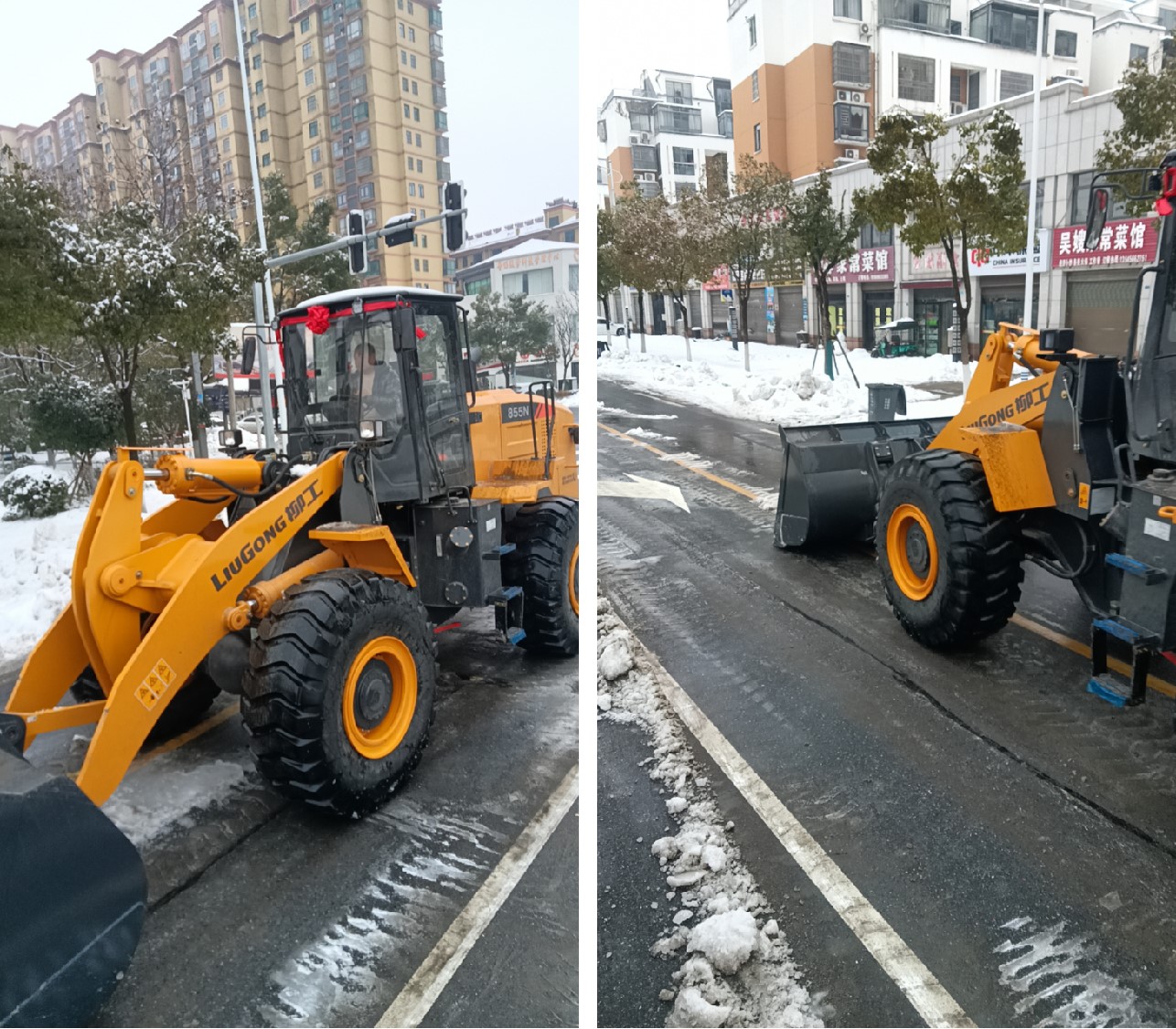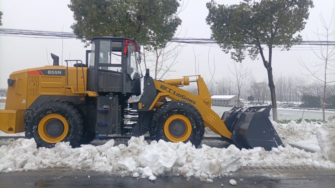 在荊州、襄陽地區(qū), 柳工856H、855N、833裝載機也積極參與到了清雪救援工作中,助力當(dāng)?shù)卣皶r清除道路積雪。值得一提的是,柳工荊州一客戶緊急采購了一臺柳工855N裝載機參與現(xiàn)場行動。