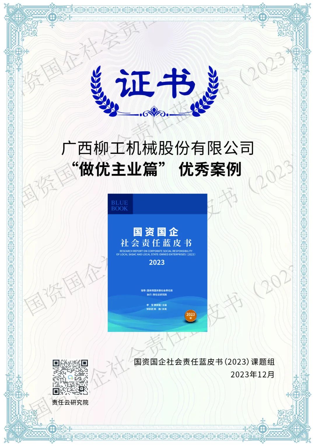 近日,由國務院國資委社會責任局主辦的“中央企業(yè)和地方國資國企社會責任系列藍皮書集中發(fā)布活動”在北京召開,會上正式發(fā)布《國資國企社會責任藍皮書(2023)》(以下簡稱《藍皮書》),并公布“國有企業(yè)社會責任·先鋒100指數(shù)”榜單,柳工集團榮登榜單,是廣西唯一一家入選該榜單的企業(yè)。