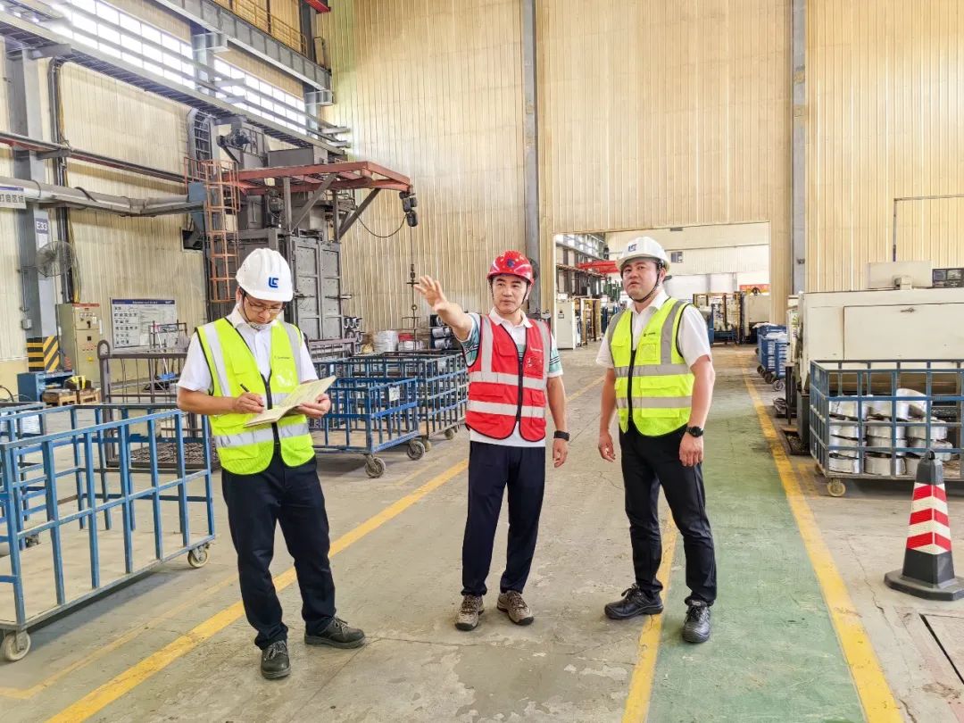 廣西柳工集團(tuán)有限公司董事會(huì)秘書左芳、健康安全環(huán)保總監(jiān)吳在波、鑄造公司總經(jīng)理汪文濤等陪同檢查。