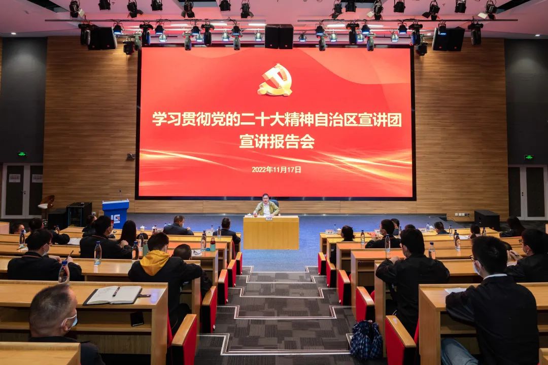 11月17日上午,學(xué)習(xí)貫徹黨的二十大精神自治區(qū)宣講團宣講報告會在柳工全球研發(fā)中心召開。自治區(qū)宣講團成員,自治區(qū)政府發(fā)展研究中心黨組書記、主任楊叢為柳工集團黨員干部宣講黨的二十大精神。廣西柳工集團有限公司黨委書記、董事長鄭津主持報告會。