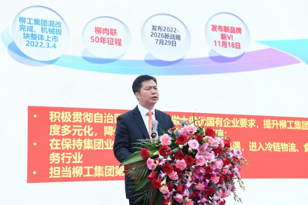 自治區(qū)國有資產(chǎn)監(jiān)督管理委員會黨委委員、副主任唐愛斌,浙江大學(xué)食品工程學(xué)院副院長劉東紅,自治區(qū)糧食和物資儲備局物資與能源儲備處處長覃家權(quán),自治區(qū)工業(yè)和信息化廳食品工業(yè)處處長周默,柳州市農(nóng)業(yè)農(nóng)村局局長曾和平,柳州市市場監(jiān)督管理局黨組書記、局長蔣為民,柳州市發(fā)展和改革委員會副主任、市糧食和物資儲備局局長涂毅,柳州市柳南區(qū)委常委、紀(jì)委書記、監(jiān)委主任葉青,柳州市供銷合作聯(lián)社黨組書記,理事會主任于祖斌,柳州市發(fā)展和改革委員會黨組成員、副主任楊壯志,柳州市商務(wù)局副局長關(guān)雁,柳州市柳南區(qū)副區(qū)長楊濟(jì)南,中國工程機(jī)械用戶委員會秘書長侯寶佳,廣西柳工集團(tuán)有限公司黨委書記、董事長鄭津,廣西柳工機(jī)械股份有限公司黨委書記、董事長兼首席執(zhí)行官曾光安,廣西柳工集團(tuán)有限公司董事、副總裁、柳州肉聯(lián)廠有限公司董事長王太平,廣西柳工集團(tuán)有限公司總會計(jì)師蔣博文,廣西柳工機(jī)械股份有限公司黨委副書記、紀(jì)委書記、工會主席李于寧等領(lǐng)導(dǎo),以及柳工集團(tuán)老領(lǐng)導(dǎo)、公司重要合作伙伴、經(jīng)銷商、供應(yīng)商、金融系統(tǒng)等代表出席本次活動并共同見證新公司名稱和新品牌新品揭幕。
