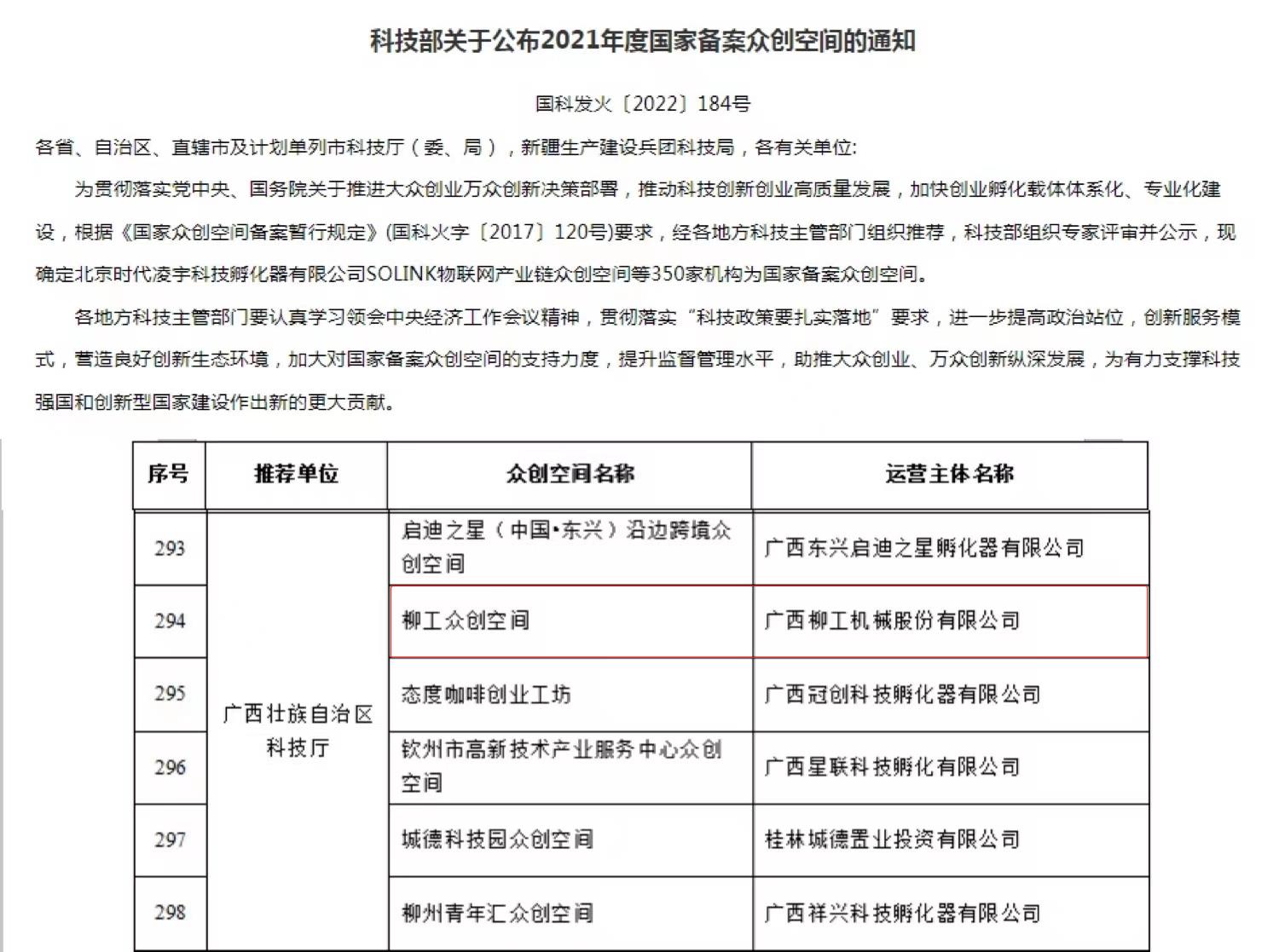 近日,國(guó)家科學(xué)技術(shù)部火炬中心發(fā)布了《關(guān)于公布2021年度國(guó)家備案眾創(chuàng)空間的通知》,柳工眾創(chuàng)空間獲評(píng)國(guó)家級(jí)備案眾創(chuàng)空間。