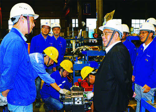 10月20日下午,公司黨委書(shū)記、董事長(zhǎng)曾光安到江蘇柳工檢查并指導(dǎo)工作。曾光安視察了江蘇柳工的生產(chǎn)現(xiàn)場(chǎng),詳細(xì)了解了相關(guān)情況,同時(shí)對(duì)現(xiàn)場(chǎng)一線員工進(jìn)行了親切慰問(wèn),提醒他們要注意安全,確保安全生產(chǎn)。