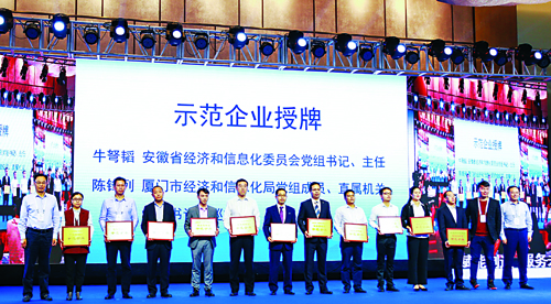 正是因?yàn)榱ね跈C(jī)人堅(jiān)韌不拔的信念和敢于挑戰(zhàn)的膽識(shí)氣魄,讓挖掘機(jī)公司在取得榮譽(yù)的里程碑上又添上濃墨重彩的一筆。10月12日,挖掘機(jī)公司在第二屆中國服務(wù)型制造大會(huì)上,獲得了由國家工業(yè)和信息化部授予的“服務(wù)型制造示范企業(yè)”榮譽(yù)稱號(hào),成為廣西今年唯一一家獲此殊榮的企業(yè)。
