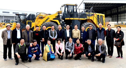 老領(lǐng)導們興致勃勃地在柳工大型裝載機前合影留念