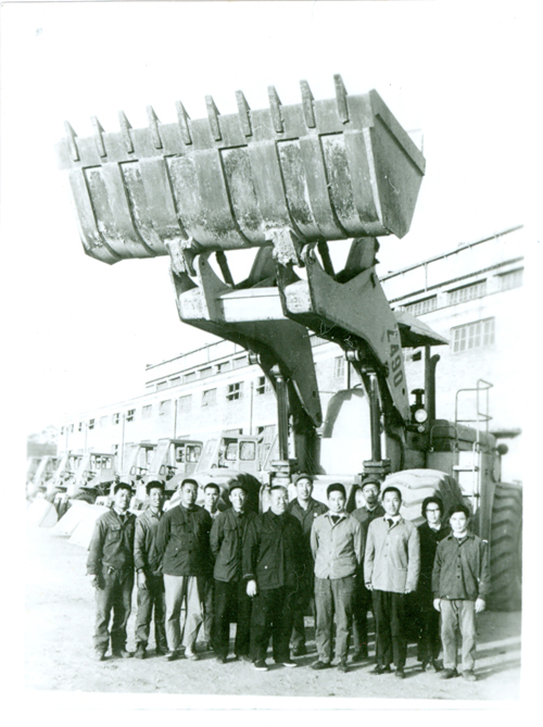 1975年,柳工成功研制了ZL90裝載機(jī),并于1977年通過(guò)國(guó)家鑒定。圖為ZL90研制小組成員在機(jī)器前合影