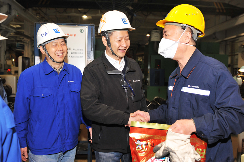 開(kāi)工儀式結(jié)束后,黃海波來(lái)到生產(chǎn)車間,對(duì)一線的班組人員進(jìn)行慰問(wèn),詢問(wèn)員工春節(jié)期間的生活情況,并囑咐員工們?cè)诟弋a(chǎn)攻堅(jiān)戰(zhàn)中,要保重身體并送上慰問(wèn)品,給員工們帶來(lái)了滿滿的祝福。員工們的臉上洋溢著陽(yáng)光般的笑容,嘴角掛著幸福的微笑。