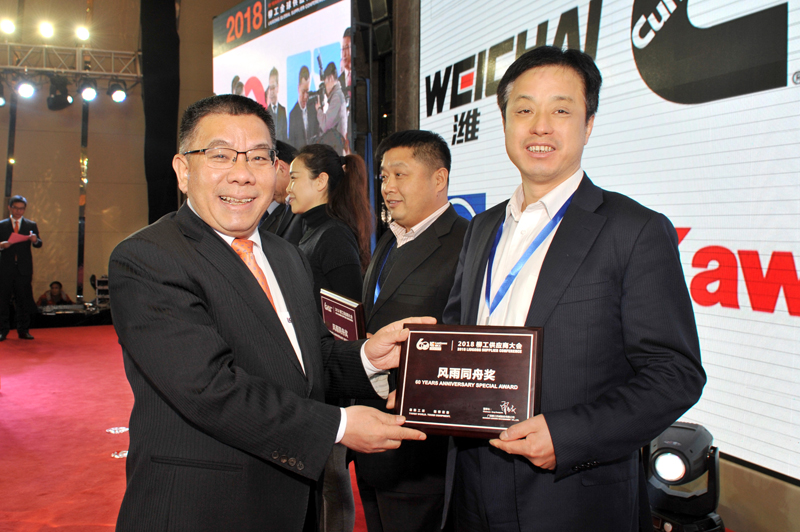 曾光安為供應(yīng)商頒發(fā)風(fēng)雨同舟獎