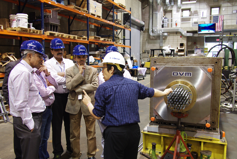 圖為在美國CTL結(jié)構(gòu)實(shí)驗(yàn)室,歐維姆公司試驗(yàn)人員向印度客戶介紹試驗(yàn)情況。